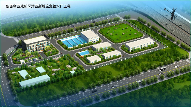 陜西省西咸新區灃西新城應急給水廠位于灃西新城渭東路以東、咸戶路以西、灃景路以南區域,占地約23.3畝,設計規模為4.2萬m3/d。水廠主要建(構)筑物有取水管井及泵房、曝氣池、V型濾池、加氯間、清水池、吸水井、送水泵房、回用水池、變配電所、綜合樓、傳達室及大門、圍墻等主要附屬構筑物。2018年5月開始運營供水,2020年1月由西咸水務集團接管運營,供水范圍為灃西新城區域。